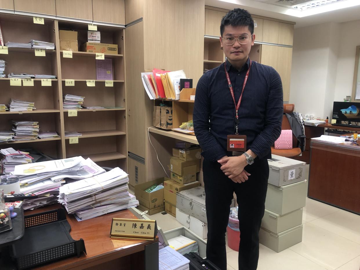 Chen Jia-yi, người đã hoàn thành khóa học thứ 55 tại Học viện Đào tạo Quan chức Tư pháp, đã tốt nghiệp từ khoa Luật của Đại học Quốc gia Chính trị và từ Viện Đào tạo Tài chính và Luật. Khi mới được phân công làm việc tại Viện Kiểm sát Nhân dân Táo Kiều, ông được giao nhiệm vụ trinh sát ma túy. Hai năm sau, ông chuyển sang làm việc tại bộ phận công tố.