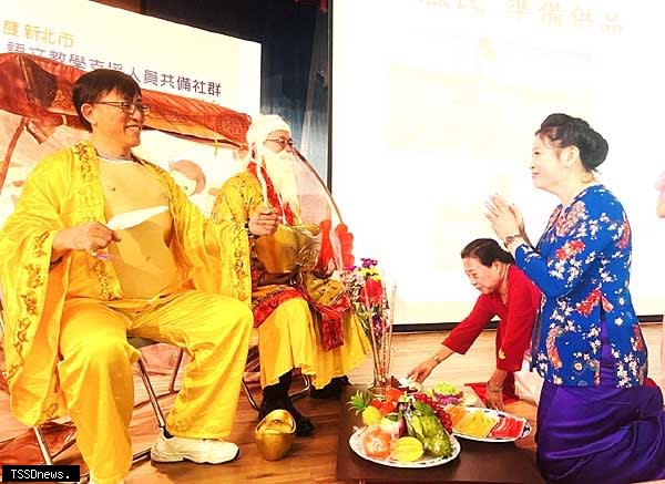 Tại một buổi lễ đáng nhớ, các giáo viên tại một trường học ở Việt Nam đã tái hiện một cách sinh động nghi thức cầu phúc của đất ông và thần tài, đây là tập tục truyền thống tượng trưng cho sự bình an và tài lộc. Buổi lễ này nhằm giúp học sinh hiểu rõ hơn về văn hóa và truyền thống của dân tộc. (Ảnh: Sở Giáo dục TP. New Taipei cung cấp)