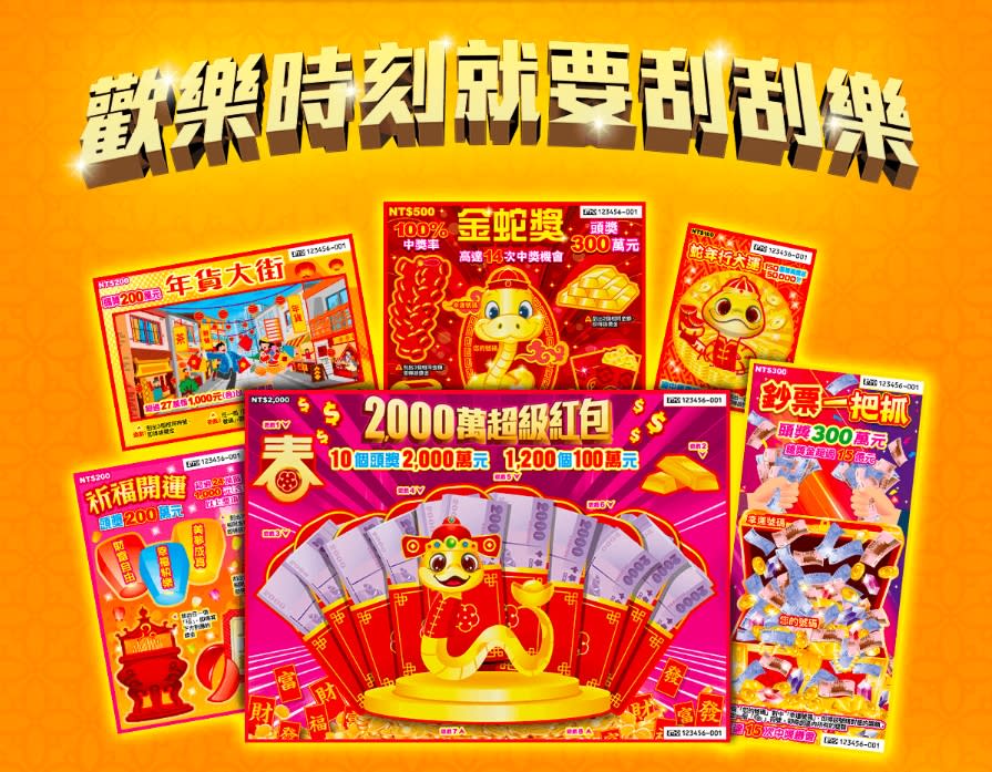 Tết Nguyên Đán sắp đến, Công ty Xổ số Đài Loan hôm nay thông báo về đợt đầu tiên ra mắt 6 loại vé cào mới trong năm nay. Trong đó, vé “Phong bì Đỏ Siêu Cấp 20 triệu” với giải thưởng lớn nhất là 20 triệu Tân Đài tệ có tổng cộng 10 giải, lập kỷ lục nhiều nhất từ trước đến nay. Số lượng giải 1 triệu Tân Đài tệ cũng đạt mức cao kỷ lục mới, lên tới 1.200 giải.
