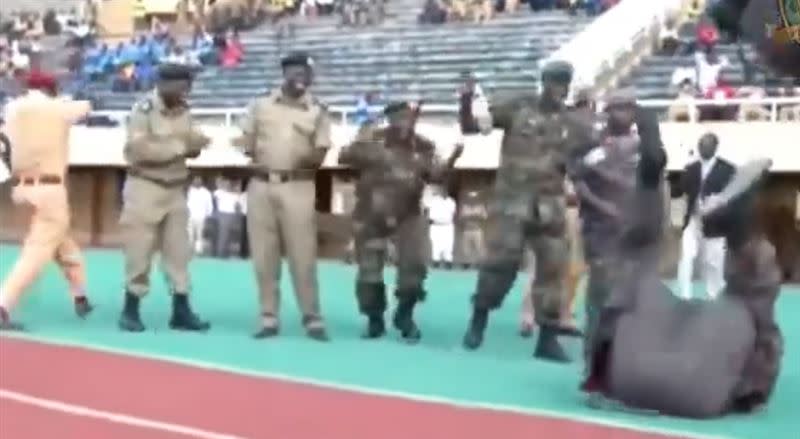 Cựu Phó Thủ tướng Uganda, ông Ali, đã tham gia một sự kiện công khai và chơi bóng đá. Trong lúc thi đấu, ông không may ngã và rơi vào tư thế bốn chân chổng lên trời. (Hình ảnh được lấy từ IG)