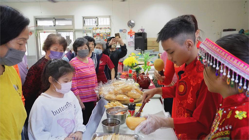 Một học sinh lớp sáu, Trương Hằng Gia, đã tự tin cầm micro và mặc trang phục truyền thống của Việt Nam mà không chút rụt rè. Hôm nay, em sẽ tự mình giới thiệu về hương vị đặc biệt tại nhà bà ngoại của mình.