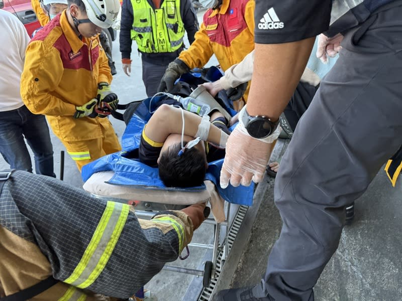 Một công nhân người Việt Nam tại một công ty thực phẩm ở Yunlin đã bị kẹp tay phải vào máy xay thịt, dẫn đến bị thương ở lòng bàn tay. Vào chiều ngày 13, sau khi nhận được thông tin, đội cứu hỏa đã nhanh chóng đến hiện trường để cứu hộ. Các bác sĩ từ Bệnh viện Đại học Quốc gia Đài Loan, chi nhánh Yunlin, cũng có mặt để hỗ trợ. Sau khi tháo dỡ máy móc và giải cứu nạn nhân, công nhân bị thương đã được đưa đến bệnh viện để điều trị. (Nguồn: Cục cứu hỏa)