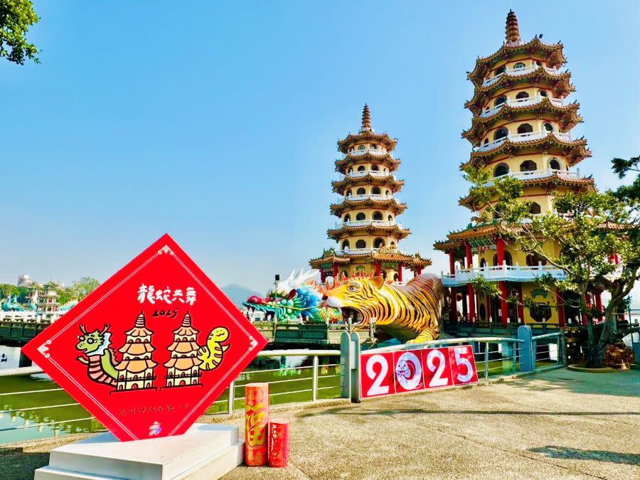 Giám đốc Sở Du lịch Cao Min Lin cho biết năm nay Sở Du lịch một lần nữa hợp tác với họa sĩ trẻ địa phương Cao Hùng, Lưu Tư Tư, kết hợp các đặc điểm của từng điểm tham quan để thiết kế các tác phẩm sáng tạo độc đáo cho chủ đề câu đối Tết Nguyên đán năm Rắn. Ví dụ như “Rồng và Rắn cùng nhảy múa” tại đầm Liên Trì, kết hợp biểu tượng chùa Long Hổ vào bức tranh; “Rắn chắp cánh bay” ở hồ Kim Sư, kết hợp với ý tưởng vườn bướm; “Rắn mang vận may” ở Mắt Đồi Cương, với hình ảnh rắn hoạt hình quấn quanh cột tháp, tượng trưng cho sự may mắn dồi dào. Các thiết kế khác còn bao gồm “Yêu gì cũng yêu bạn” ở sông Ái, phù hợp cho các cặp đôi chụp ảnh check-in; “Niềm vui đến nhà” ở nhà thờ cầu vồng Kỳ Tân, và “Rắn vàng cưỡi mây” ở Thế Giới Mặt Trăng, sống động mô tả cảnh rắn Hằng Nga du hành trên bầu trời… Không chỉ mang đến sự may mắn, vui tươi mà còn tạo bầu không khí đậm chất lễ hội Tết cho các điểm du lịch.
