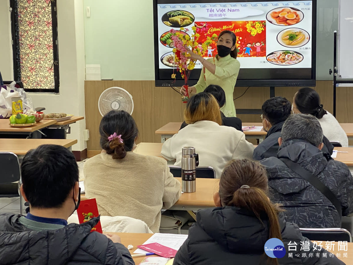 Trong một khóa học, chị Nguyễn Thanh Tâm đã giới thiệu rằng ở Việt Nam cũng có phong tục đón Tết âm lịch. Trong đó, chị nhấn mạnh rằng bánh chưng không chỉ là món ăn truyền thống không thể thiếu trong dịp Tết, mà còn tượng trưng cho ý nghĩa đoàn viên của gia đình. Từ việc rửa lá, rửa nếp, gói bánh đến nấu bánh, cả gia đình tụ họp lại với nhau, cùng nhau làm việc từ sáng đến tối, đồng tâm hiệp lực để nấu bánh chưng sao cho ngon. Bánh chưng ở Việt Nam khác với bánh chưng ở Đài Loan, bánh chưng miền Bắc có hình vuông, còn bánh tét miền Nam có hình dáng dài. Ngoài ra, chị Nguyễn Thanh Tâm cũng đề cập rằng trong việc trang trí Tết, mọi người sẽ trưng bày hoa tươi. Ở miền Bắc là hoa đào màu hồng để cầu mong gia đình bình an, còn ở miền Nam là hoa mai vàng để mang lại sự giàu có, phú quý.