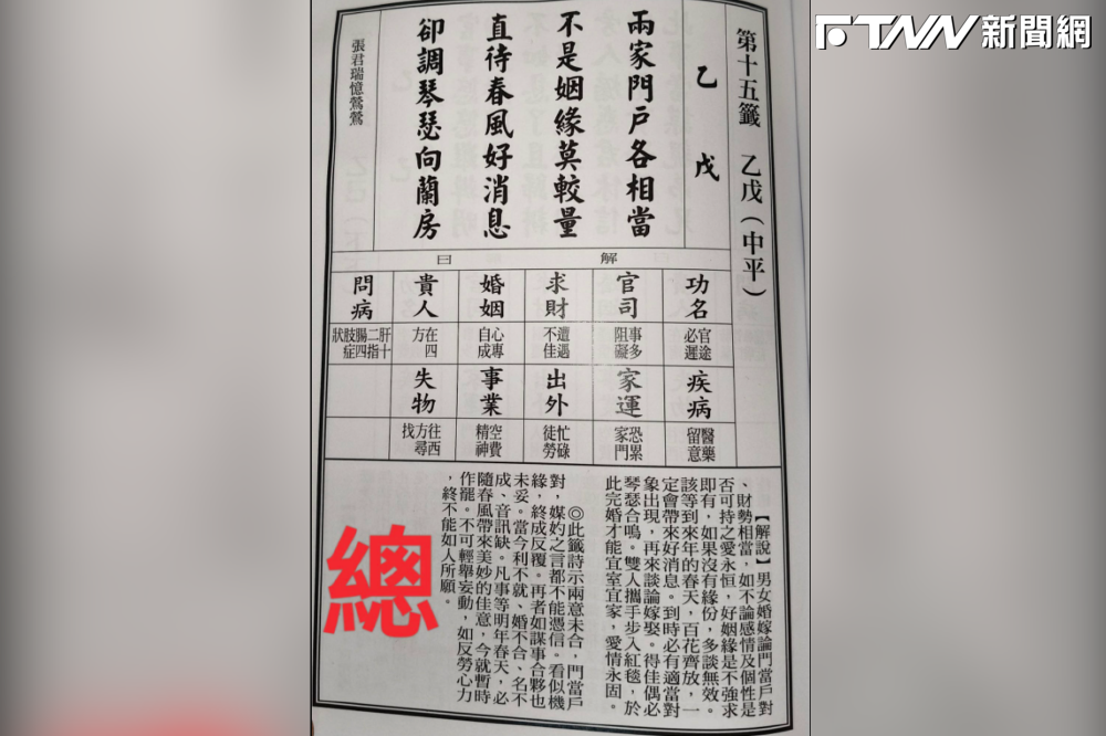 Vào ngày 28, đêm giao thừa, mọi người ở Đài Loan đều rất quan tâm đến vận mệnh quốc gia trong thời gian tới sẽ ra sao. Đền Từ Thánh Cung ở Đầu Tiền Trang, Tân Bắc đã rút được quẻ “Trung Bình” cho năm con rắn, với ý nghĩa rằng không nên so đo chuyện tình duyên; hãy chờ đợi tin vui từ gió xuân, khi đó sẽ có cơ hội để hòa hợp. Một thầy giải quẻ đã phân tích rằng “đối lập” sẽ là vấn đề lớn của Đài Loan trong năm nay, cần phải chờ đợi một cơ hội “khởi đầu lại” để giải quyết bế tắc, cuối cùng mang đến sự hòa hợp và ổn định cho quốc gia.
