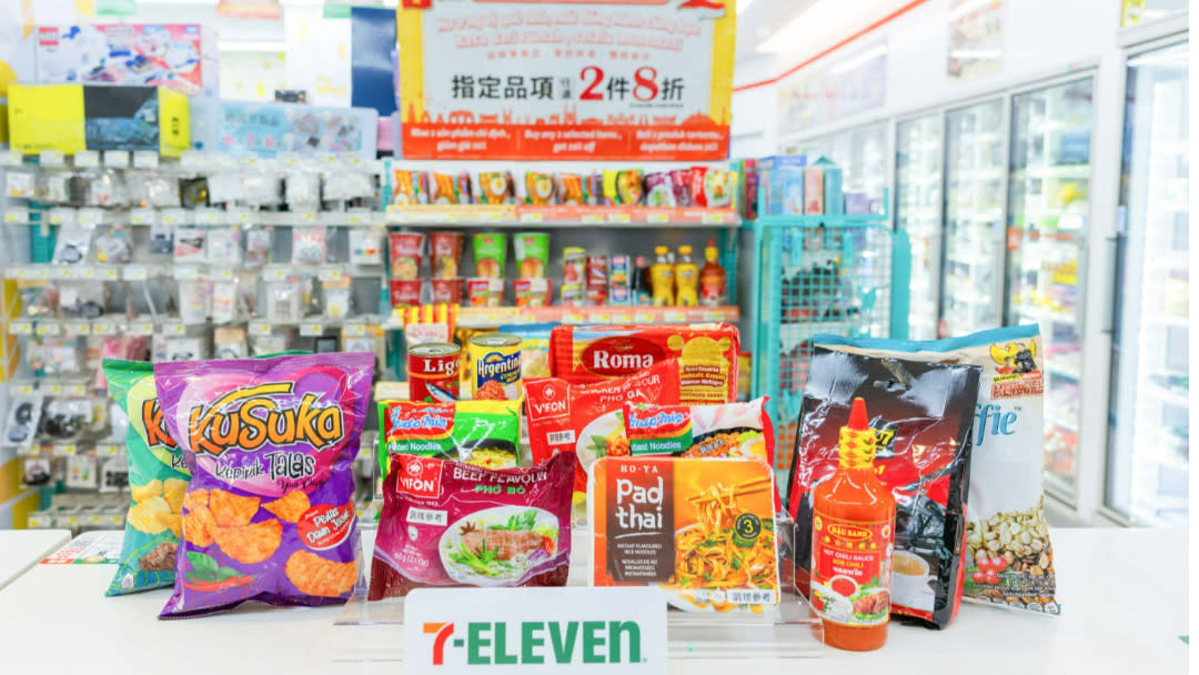 7-Eleven đã tận dụng kinh nghiệm nhiều thập kỷ trong việc mua sắm quốc tế, không chỉ nhanh chóng giới thiệu các sản phẩm bán chạy từ Nhật Bản và Hàn Quốc mà từ năm ngoái, họ còn mở các khu vực chuyên biệt cho hàng hóa Đông Nam Á tại các cửa hàng trong những khu thương mại nhất định. Họ đã nhập khẩu hơn một trăm loại sản phẩm phổ biến từ Đông Nam Á, trong đó mì ăn liền và đồ ăn vặt là những mặt hàng bán chạy nhất. Dự kiến đến cuối năm nay, số lượng cửa hàng có khu vực này sẽ đạt tới con số một nghìn.