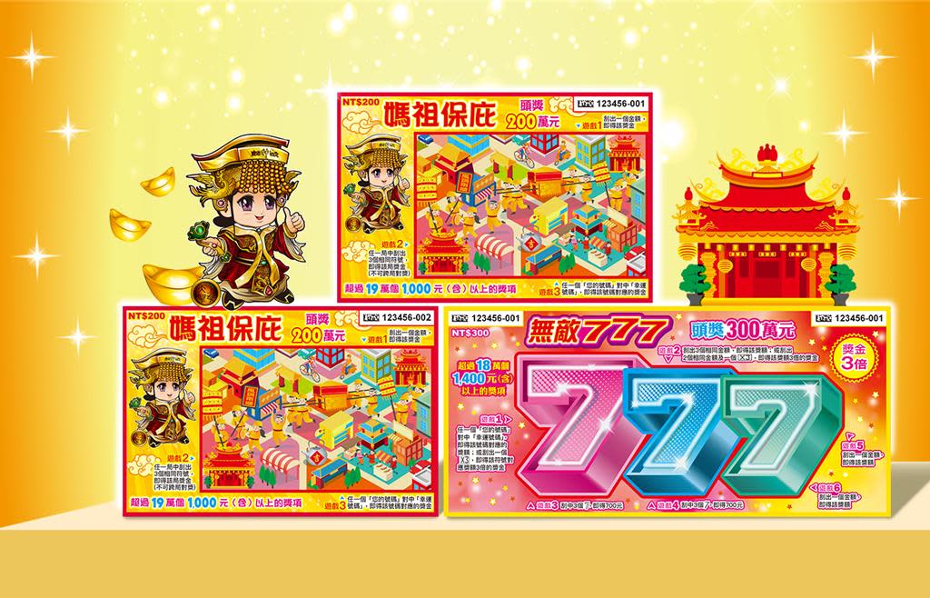 Cùng ngày, công ty cũng cho ra mắt loại vé số cào với giá bán 300 Đài tệ, mang chủ đề con số may mắn “7” mang tên “Vô Địch 777”. Thiết kế vé và cơ cấu giải thưởng đều gắn liền với con số “7”, và có 5 giải thưởng lớn trị giá 3 triệu Đài tệ mỗi giải. Tổng số giải thưởng cho cả hai loại vé này vượt quá 3,81 triệu giải, với tổng giá trị giải thưởng hơn 18,2 tỷ Đài tệ.