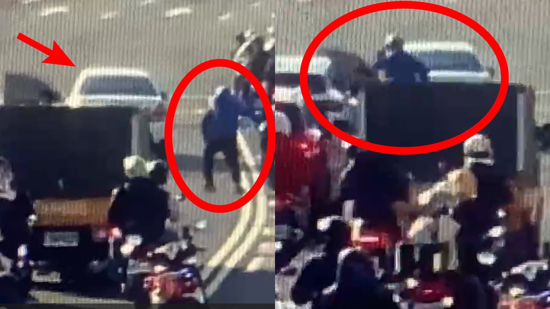 Đúng lúc đó, một người dân mặc áo xanh đã nhanh chóng lên xe hỗ trợ phanh lại, kịp thời ngăn chặn nguy cơ tai nạn. Sau khi kiểm tra phương tiện, cảnh sát phát hiện chất lỏng methamphetamine cùng dụng cụ sử dụng ma túy, nên tiến hành tạm giữ nghi phạm để điều tra.