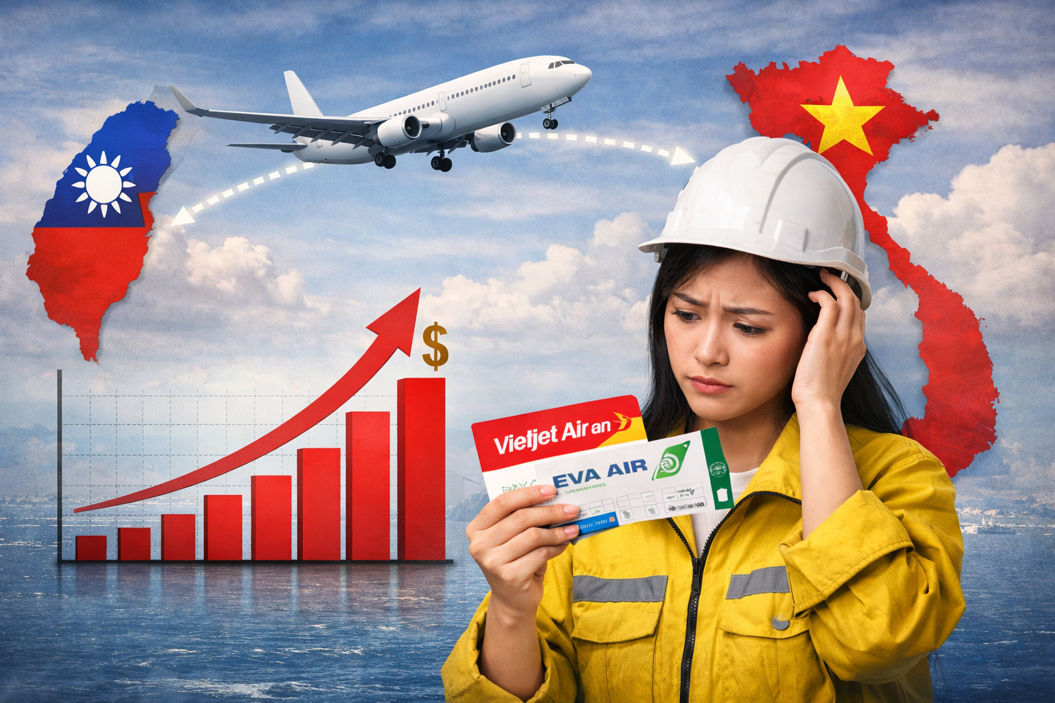 Thời gian gần đây, giá vé máy bay các chặng từ Đài Loan về Việt Nam dịp Tết đang có xu hướng tăng nhanh, khiến nhiều lao động Việt lo lắng. Theo ghi nhận, không chỉ giá vé cơ bản tăng mà các khoản thuế, phí và phụ thu nhiên liệu cũng đang được điều chỉnh theo chiều hướng đi lên. Đặc biệt, các khung giờ bay đẹp như buổi tối hoặc cuối tuần đang dần khan hiếm, nhiều chuyến đã được giữ chỗ sớm dù còn cách Tết vài tháng.